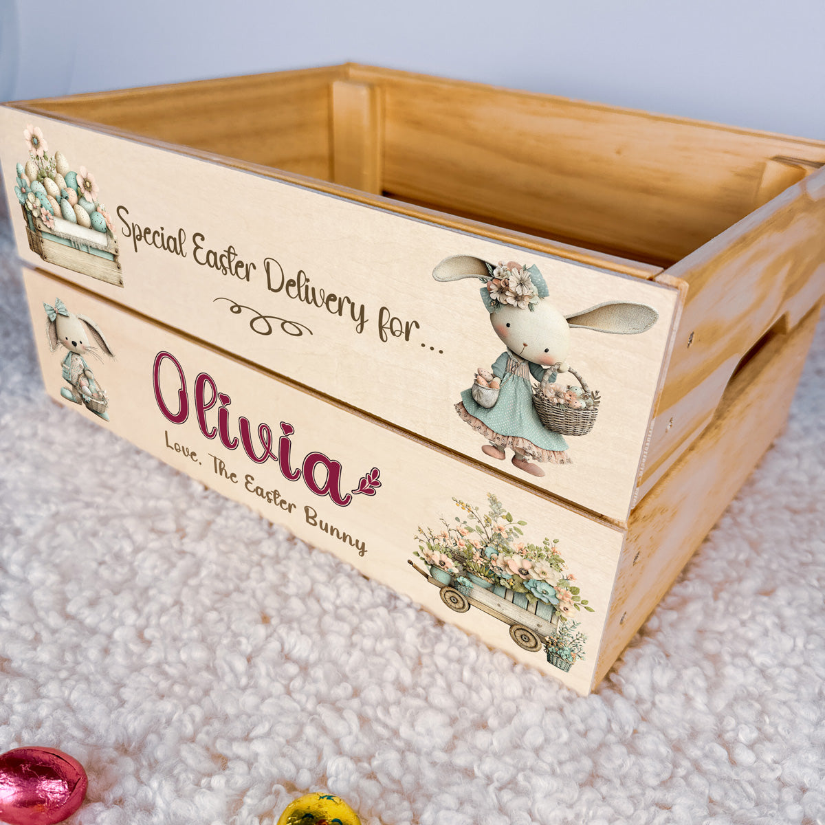 Perfect for filling with chocolate eggs, toys, books, and Easter goodies — this crate becomes part of your family tradition year after year.